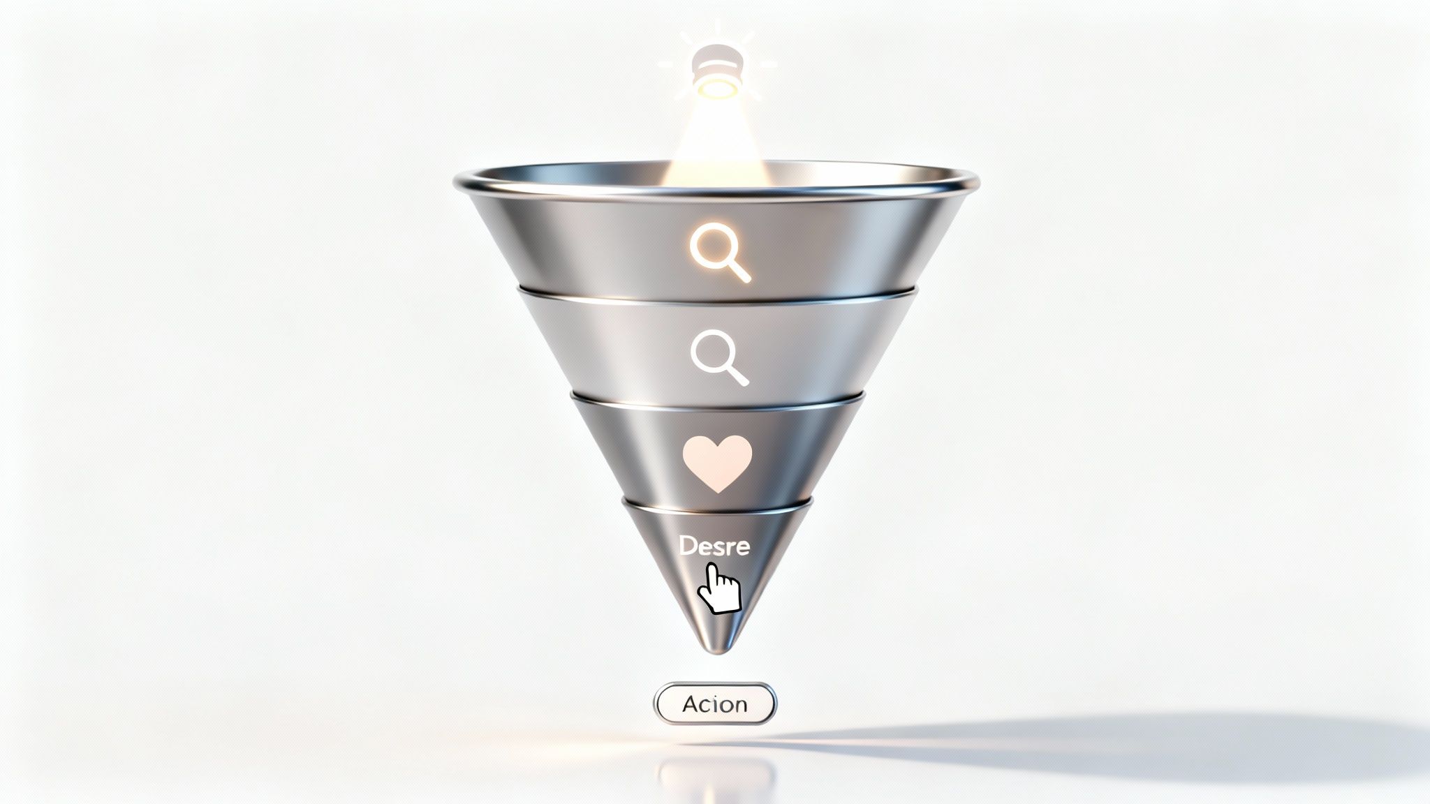 Ein starker Marketing-Funnel nach dem AIDA-Prinzip ist keine trockene Theorie oder eine simple Checkliste. Sehen Sie es eher als eine psychologische Landkarte – sie zeigt den Weg, den ein potenzieller Kunde vom ersten, flüchtigen Kontakt bis zur bewussten Kaufentscheidung zurücklegt. Um diesen Weg erfolgreich zu gestalten, müssen wir jede der vier Etappen – Attention, Interest, Desire und Action – genau verstehen und mit den richtigen Impulsen begleiten.