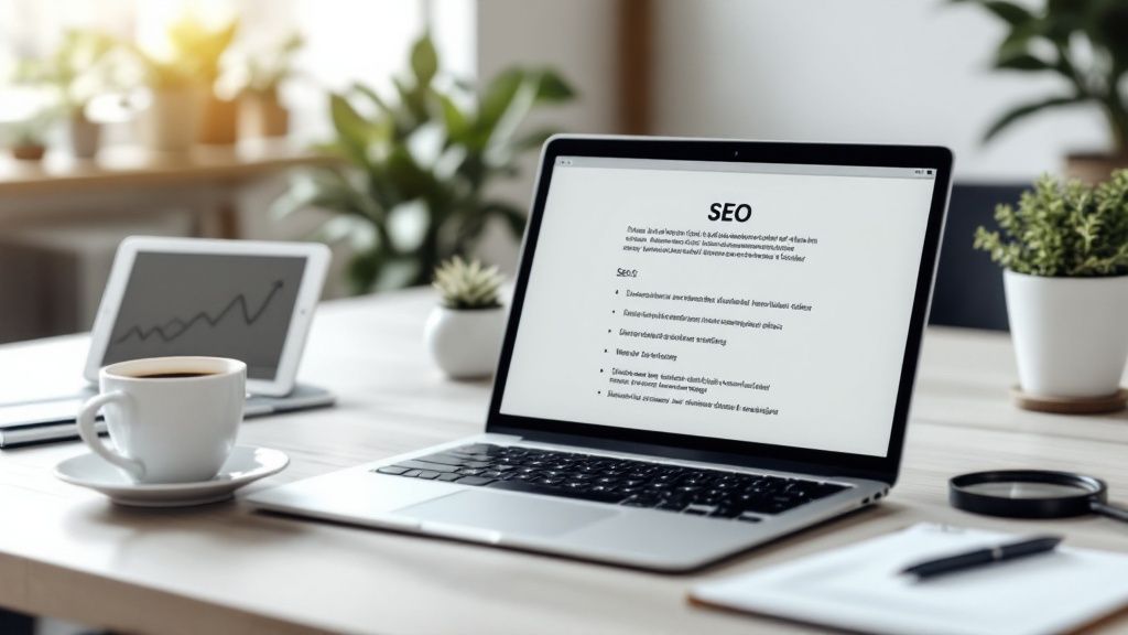 Ein erstklassiger Text ist fantastisch, aber er ist nur die halbe Miete. Damit Google den Wert Ihres Inhalts auch wirklich erkennt und ihn suchenden Nutzern anzeigt, muss die technische Hülle stimmen. Diese sogenannte On-Page-Optimierung ist kein Hexenwerk. Im Grunde ist es eine Reihe logischer Handgriffe, die Ihrem Text den nötigen Schub geben, um ganz oben mitzuspielen.